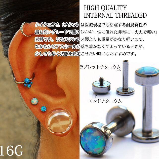 ・台座部分もラブレット部分も医療用タイタニアム(チタン)で丈夫で軽く相当なアレルギーでない限りアレルギーの方でも安心してお使い頂けます。綺麗なオパールピアスは独特な色合いが神秘的でとってもステキです。