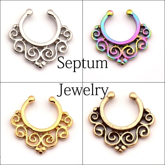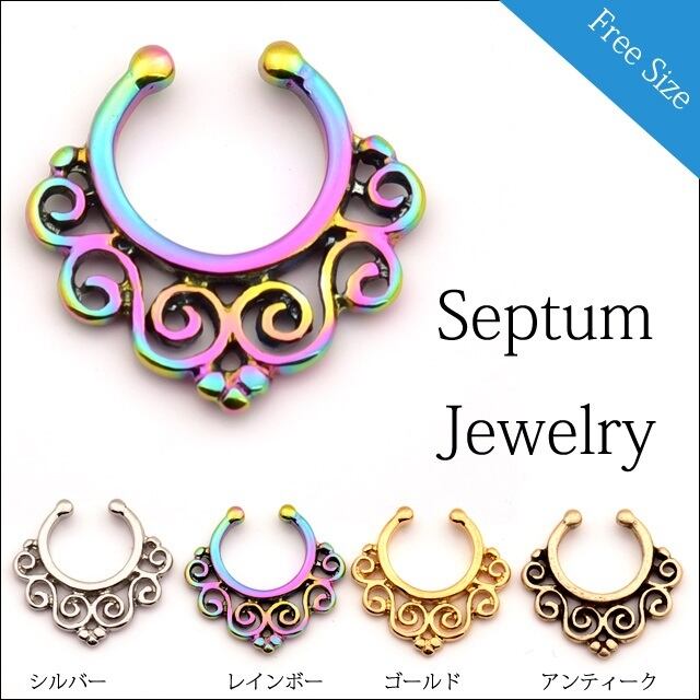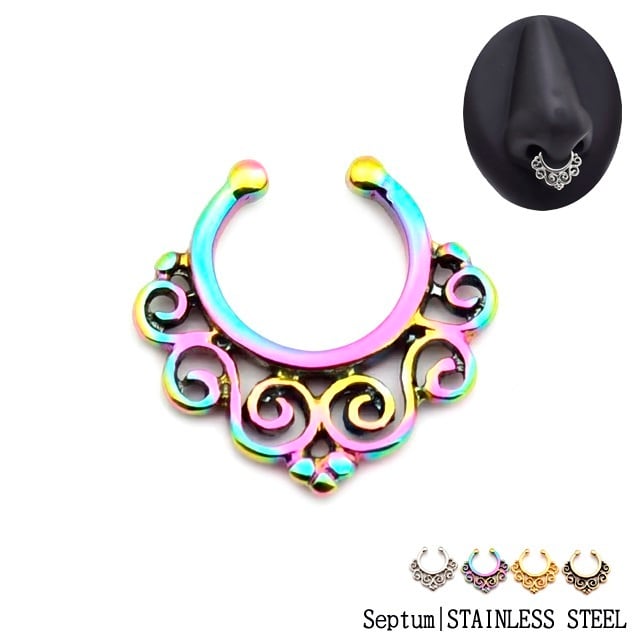 ・全4色から選べます。エスニックアジアンのデザインでオシャレ♪セプタム開けたいけど。。。ご安心下さい、コレならピアス穴がなくても気軽にセプタムピアスが楽しめます。