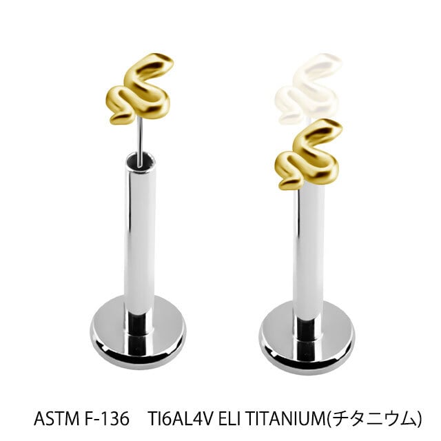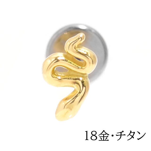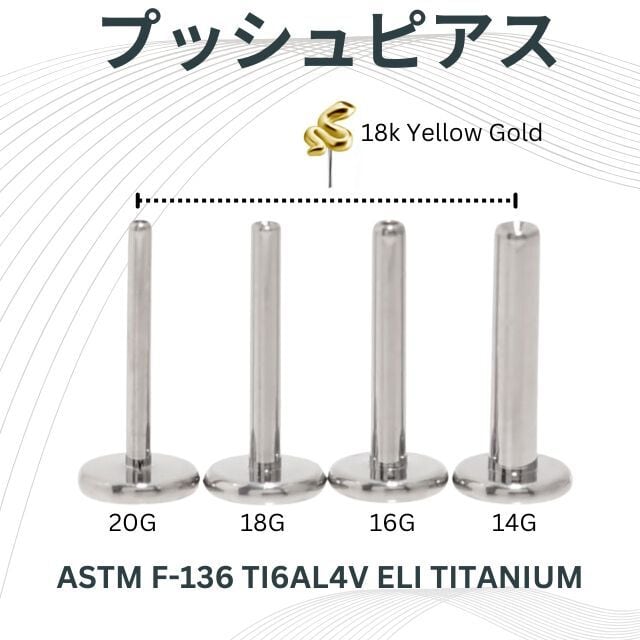 18K 18金イエローゴールド プッシュピアス 20G 18G 16G 14G スネイク 蛇ピアス 金属アレルギー対応 チタンピアス つけっぱなし ピアス ボディピアス 軟骨ピアス | BONshape ボディピアス専門店