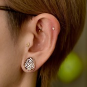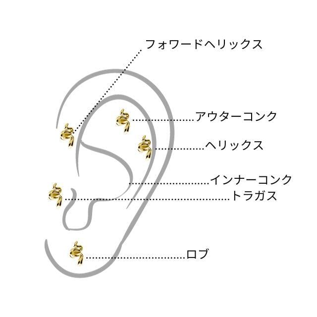 ・蛇は、18Kゴールドで変色しにくく耐久性に優れているため、高い価値があります。裏面には18金を証明する刻印入り。デザインの中でも人気のスネイクデザインです。 何と言っても装着が挿すだけの簡単プッシュピアスタイプなのでネイルされている方や不器用な方にもオススメです。ラブレットはチタン素材なのでお肌にも優しく金属アレルギーの方でも比較的安心して使えます。※たまにキャッチが緩くなったら画像のように調節して下さい。※たまにキャッチが緩くなったら画像のように調節して下さい。※キャッチは専用のプッシュピアスなら20G/18/16/14Gどれにもはまります、着ける部位でゲージサイズが異なるときは着けたいサイズのラブレットがあれば使えます。 ※ラブレットの下のフラットなディスク部分は入荷時期によりサイズが異なります予めご了承ください。 インナーコンク アウターコンク ヘリックス トラガス フォワードヘリックス ロブ 鼻ピアス メデューサ