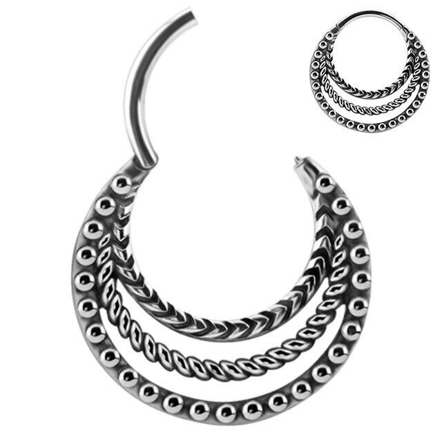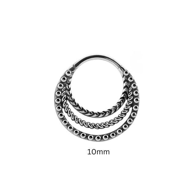 ワンタッチで簡単に開閉出来ます。 ロブやヘリックス、インナーコンクなど軟骨ピアスにもオススメです。人気のねじりデザインが真ん中に入る事で大人っぽくエスニックデザインのようなお洒落なリングピアスです。 ※3枚目4枚目5枚目の装着画像は内径10mmになります。