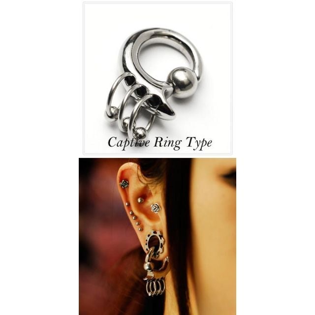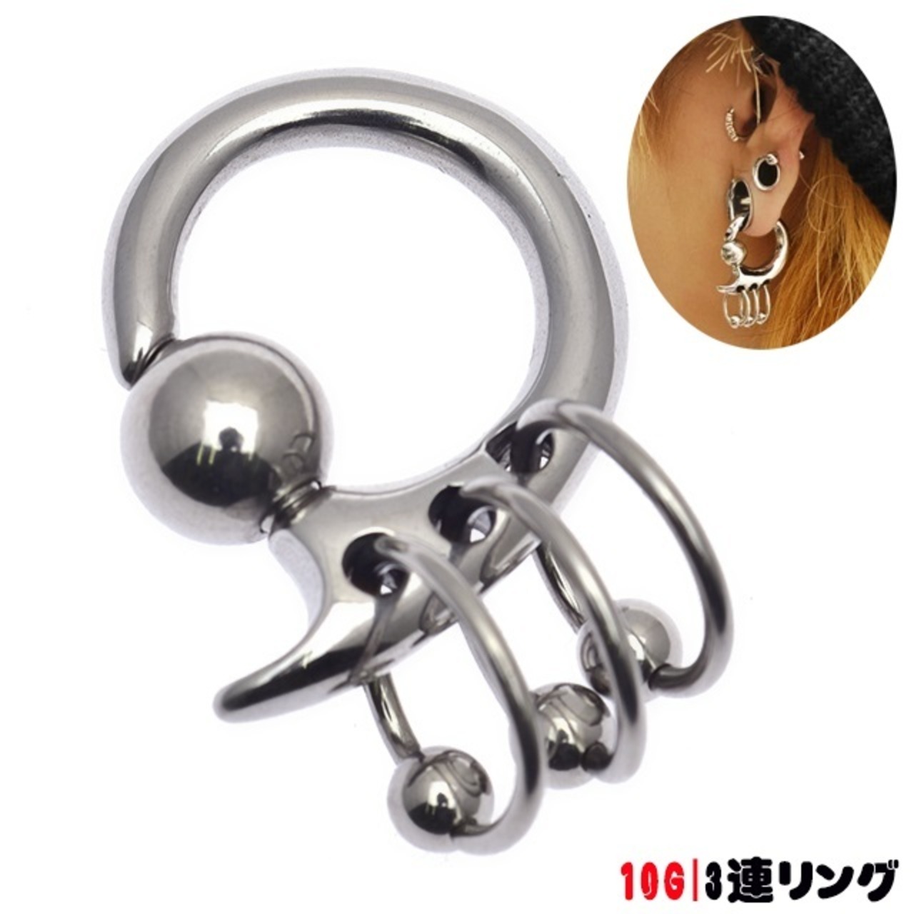 ・3つのリングが連なってかっこいい仕上がりに、当店オススメピアスです!以前の3連リングとは違い、本物のピアスになっている為3連リング部分は外れにくいNEWデザインになりました。これ一つでイメチェン出来るのでお勧めです。