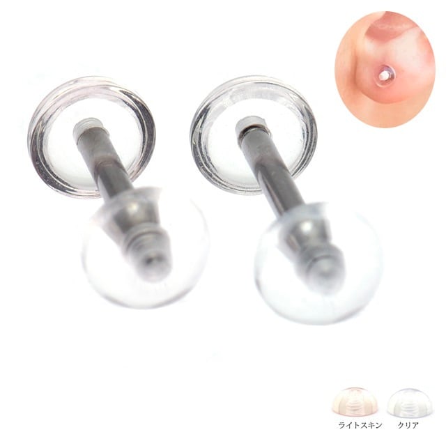 ・色は2色から選べます。半円のドーム型のキャッチにストレートピアスがセットになっております。 ドーム型なのでホールにフットして横から見た時も綺麗です。 ※ロブや軟骨の平均シャフトサイズは5mm~6mmです。舌ピアスの平均サイズは12mm~14mmです。あくまでも平均サイズなので参考にして下さい。