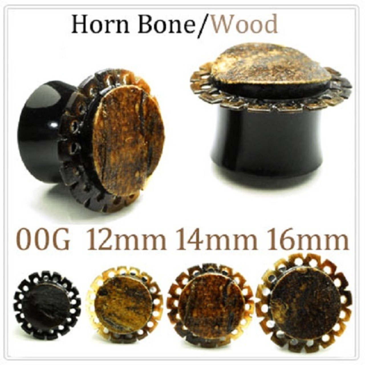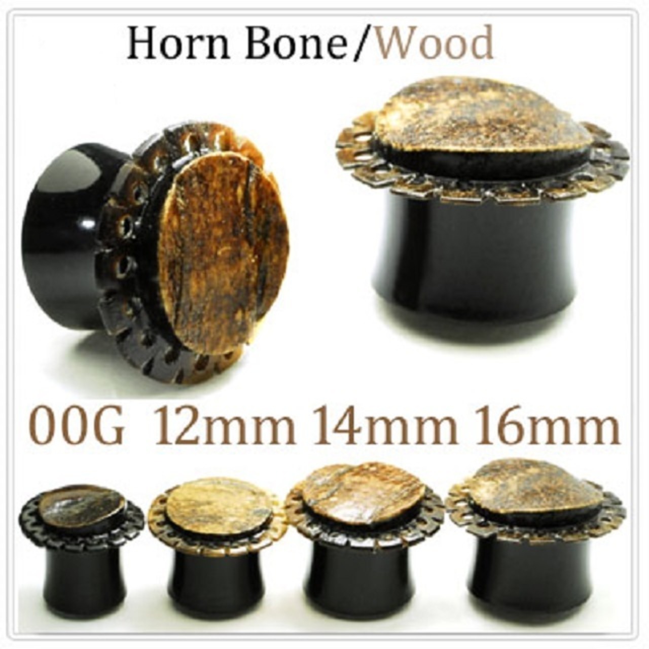 拡張ピアス 00G 12mm(1/2) アステック マヤ ウッドピアス ダブルフレア ボディピアス 天然素材ピアス