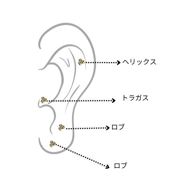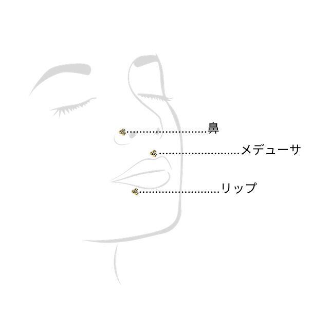・デザイン部分は14金イエローゴールドで高級感ある輝きです。14金は18金よりも硬度があり傷がつきにくいです。 輝き綺麗で高級感もあります。 ラブレット部分は医療用チタンなので金属アレルギー対応ピアスになります。何と言っても装着が挿すだけの簡単プッシュピンタイプなのでネイルされている方や不器用な方にもオススメです。 つけっぱなしOKでロブ へリックス トラガス 軟骨ピアス メデューサ リップ 鼻ピアス等にオススメです。