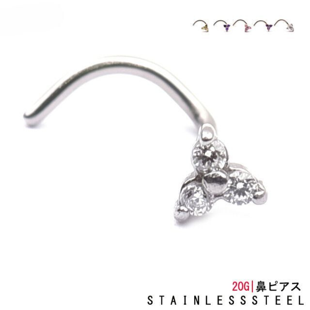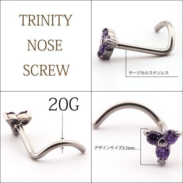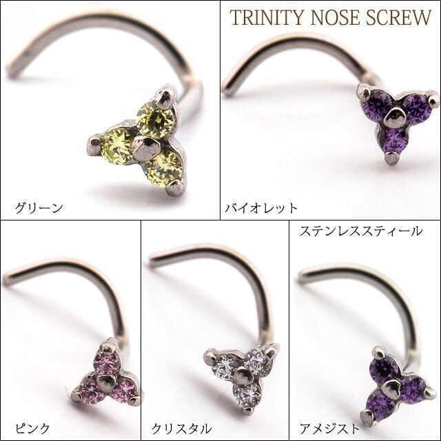 ・トリニティデザインがとってもキュート♪スクリュータイプなので外れにくく、慣れれば装着も簡単です。カラバリ豊富で5色から選べます