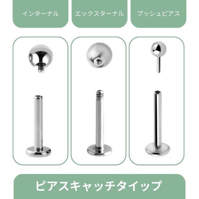 何と言っても装着が挿すだけの簡単プッシュピアスなのでネイルされている方や不器用な方にもオススメです。※たまにキャッチが緩くなったら画像のように調節して下さい。※キャッチは、専用のプッシュピアスなら20G/18G/16G/14G/10G/8G/6Gどれにもはまります(6Gは太さ4mmです、ホールに隙間がある方やラブレットが長いとバーベルが見えたり、そのまま外れたりする可能性があるのでお気をつけ下さい)着ける部位でゲージサイズが異なるときは着けたいサイズのラブレットがあれば使えます。インナーコンク アウターコンク ヘリックス トラガス フォワードヘリックス ロブ 鼻ピアス メデューサ