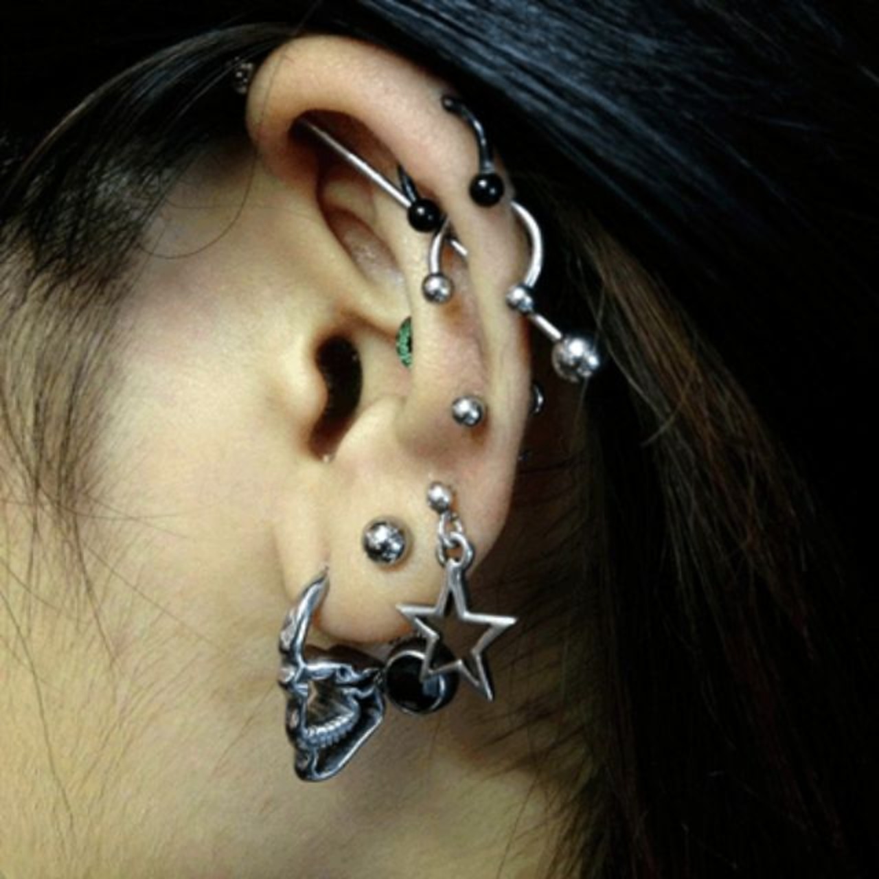 フックピアス 8G 3D スカル ロブ 軟骨ピアス ステンレスピアス ボディピアス