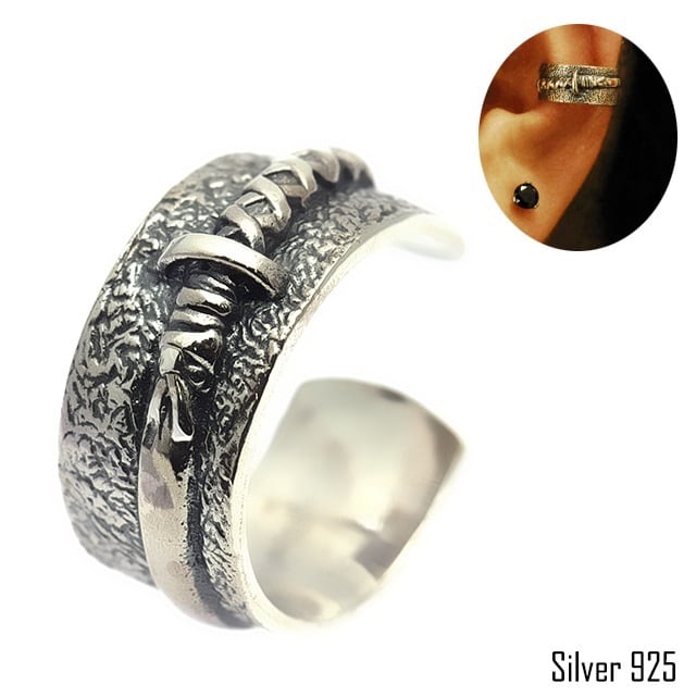 ・ピアスの穴が無くても使えるカフです。つけるだけで、インパクトがでます。カッコイイコーディネートをしたい方にオススメな1品です。 しかも、全てがシルバー925で作られ、耳の幅に調節しやすく、とっても細かい仕上がりです。刀が3Dっぽくなって、オシャレ度UP↑プレゼントにもオススメです★ディテールにこだわった人気ブランドgood vibrationsシリーズの中の『oriental vibrations』ならではです!!専用の袋とカードをつけて発送いたします。