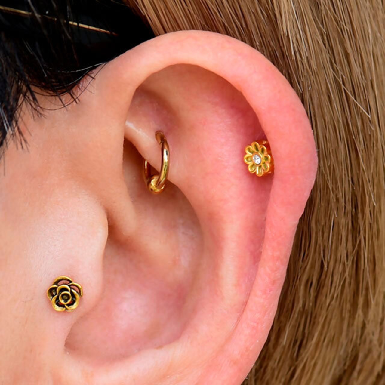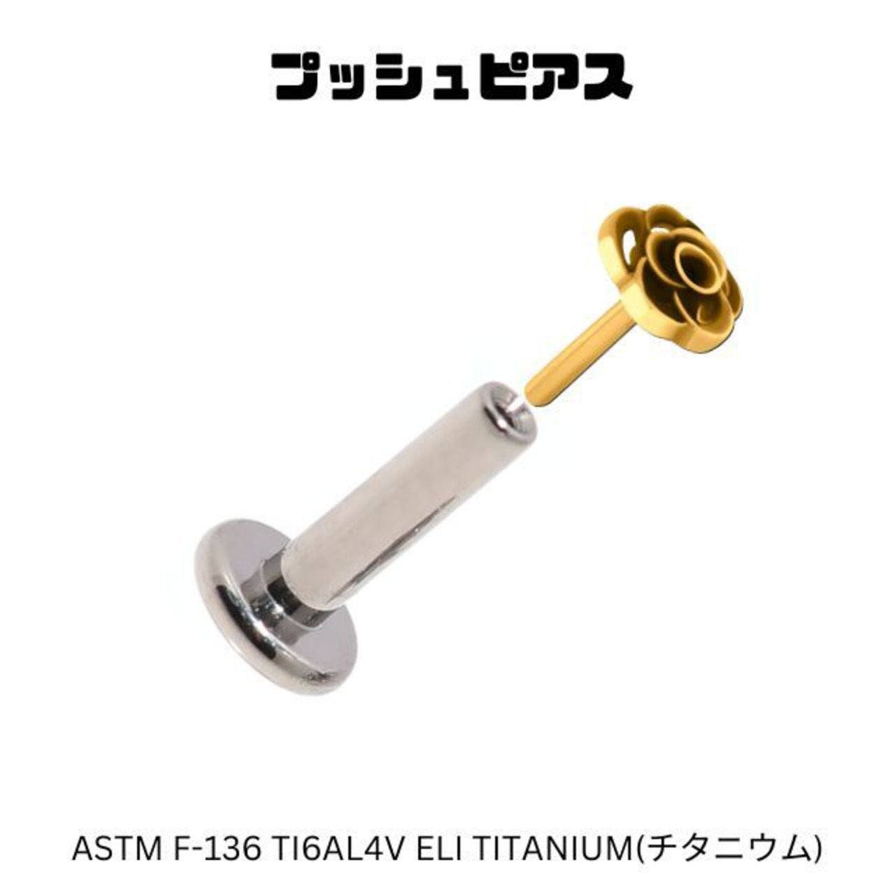 プッシュピアス 20G 18G 16G 14G ゴールド 薔薇ピアス ラブレットスタッド 金属アレルギー対応 チタンピアス つけっぱなし 拡張ピアス 軟骨ピアス ボディピアス