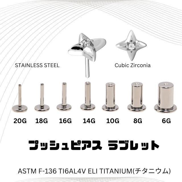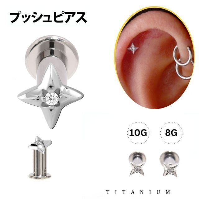 プッシュピアス 10G 8G シャインスター 星 ラブレットスタッド パーツのみ 金属アレルギー対応 チタンピアス つけっぱなし 拡張ピアス 軟骨ピアス ボディピアス