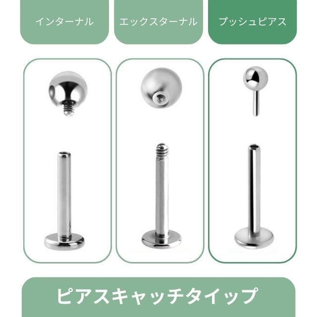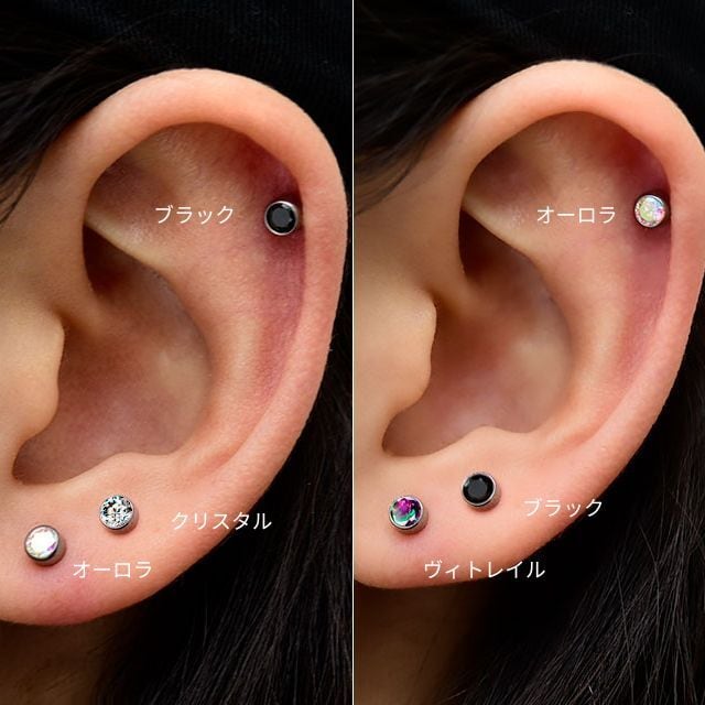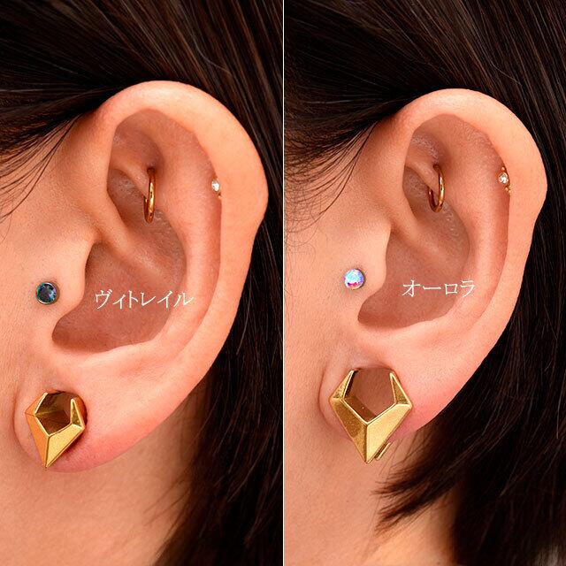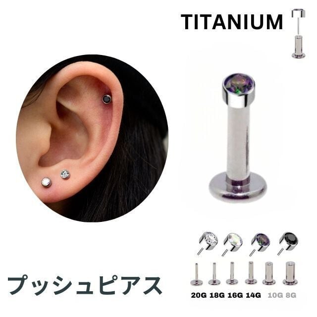 ・きらきら輝く人気のストーンピアスは、台座がチタン素材で金属アレルギーの方でも比較的安心して使えます。何と言っても装着が挿すだけの簡単プッシュピアスなのでネイルされている方や不器用な方にもオススメです。※キャッチは、専用のプッシュピアスなら20G/18G/16G/14G/10G/8Gどれにもはまります(6Gは不可)。着ける部位でゲージサイズが異なるときは着けたいサイズのラブレットがあれば使えます。画像の別売りの専用ツールは、スムーズにホールに入るのでストレスなくピアスが着けれるのでオススメです。インナーコンク アウターコンク ヘリックス トラガス フォワードヘリックス ロブ 鼻ピアス メデューサ