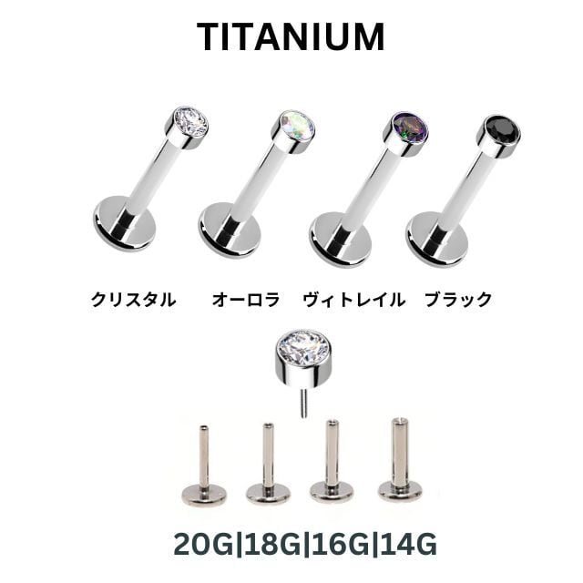 プッシュピアス 20G 18G 16G 14G 全4色 ストーンピアス ラブレットスタッド 金属アレルギー対応 チタンピアス つけっぱなし 軟骨ピアス ボディピアス | BONshape ボディピアス専門店