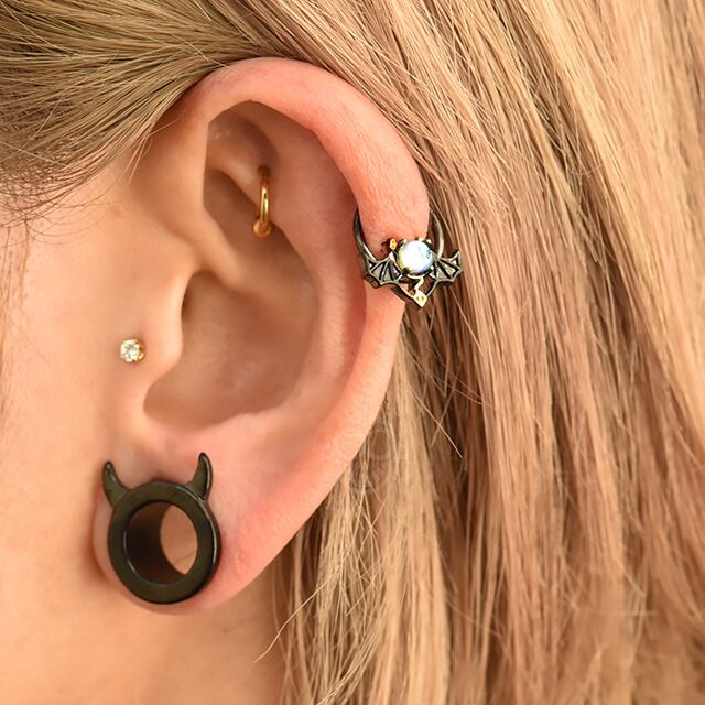 ・※少し色剥げや傷がある為、販売価格の半額にて販売です。訳ありの為、返品交換不可です。デビルの耳がアクセントになって可愛いくブラックピアスなのでかっこいいです。※耳の装着画像ピアスは14mmです参考にして下さい。