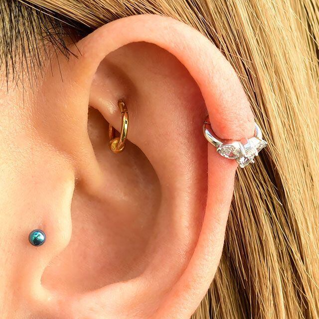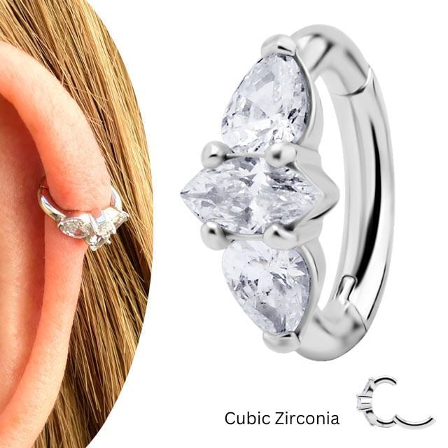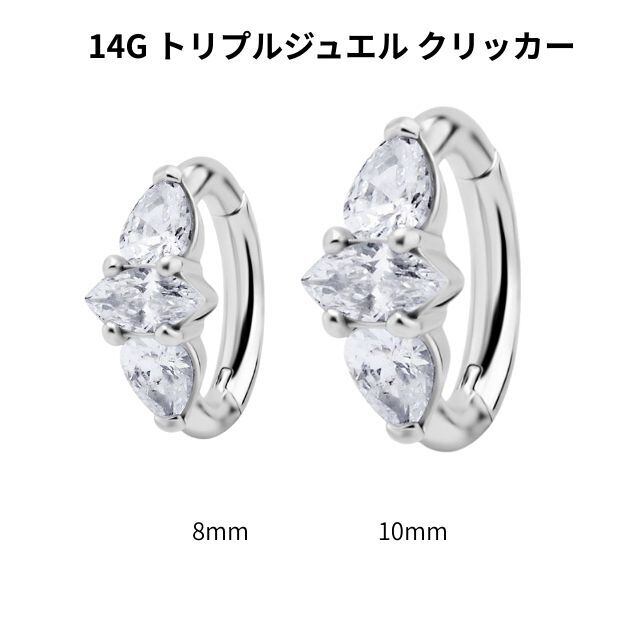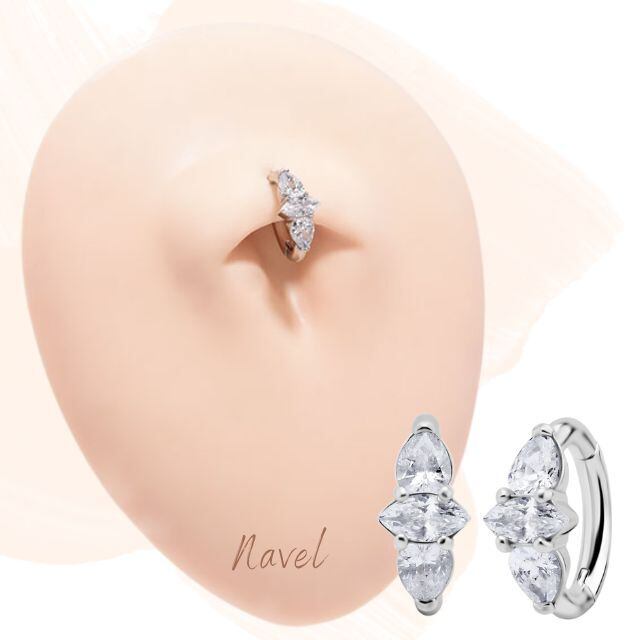 金属アレルギー 対応 ボディピアス 14G Oval Navel トリプルジュエル クリッカー 軟骨ピアス ワンタッチピアス つけっぱなし ピアス リングピアス ニッケルフリー セカンドピアス | BONshape ボディピアス専門店