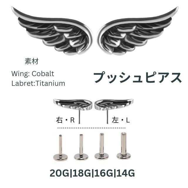 プッシュピアス 20G 18G 16G 14G 天使の羽根 翼 ラブレットスタッド 金属アレルギー対応 チタンピアス つけっぱなし 軟骨ピアス ボディピアス