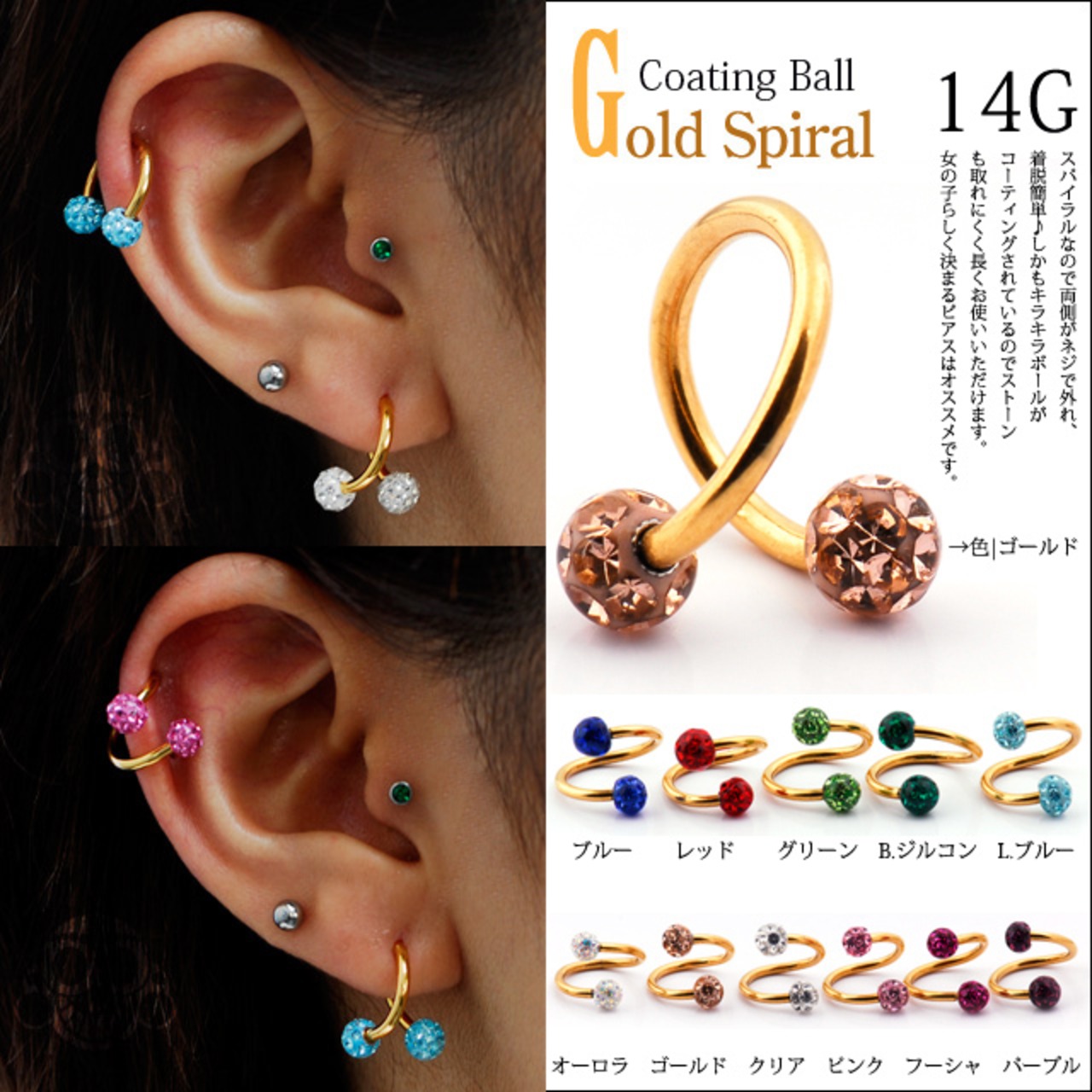 ・スパイラルなので両側がネジで外れ、着脱簡単♪しかもキラキラボールがコーティングされているのでストーンも取れにくく長くお使いいただけます。女の子らしく決まるピアスはオススメです。 ※SALE品は不良品以外、返品交換不可です。