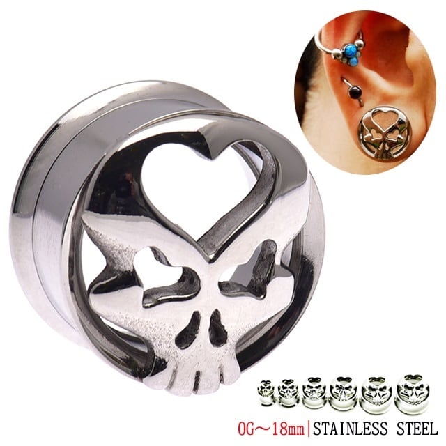 ・カッコイイスカルデザインのハイポリッシュトンネル★ 目やおデコにハートデザインがポイント!可愛らしくも見せれますし、格好良く見せる事も・・ ハイポリッシュで磨きがとっても綺麗なトンネルの仕上がりです♪ インターナルダブルフレアタイプは、ホールを大きく、綺麗に見せるトンネルです。 ※SALE品は不良品以外、返品交換不可です。