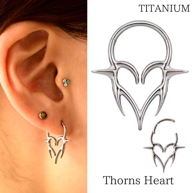 ボディピアス リング 軟骨ピアス 16G ワンタッチリング thorns Heart ハートピアス 金属アレルギー対応 チタンピアス セグメントリング ボディピ軟骨 ピアス なんこつぴあす Pierce リングピアス | BONshape ボディピアス専門店