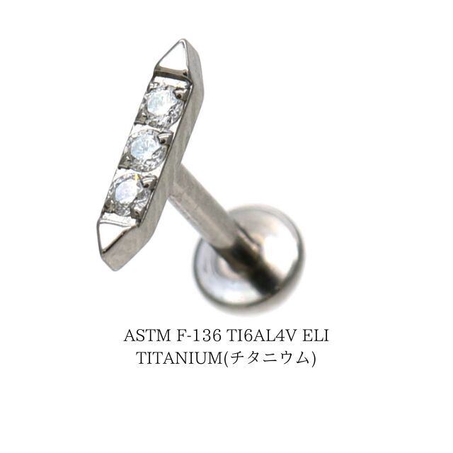 金属アレルギー対応 18G 16G 3ジュエル スティック インターナル ラブレット チタンピアス つけっぱなし ロブ ヘリックス インナーコンク アウターコンク ボディピアス | BONshape ボディピアス専門店