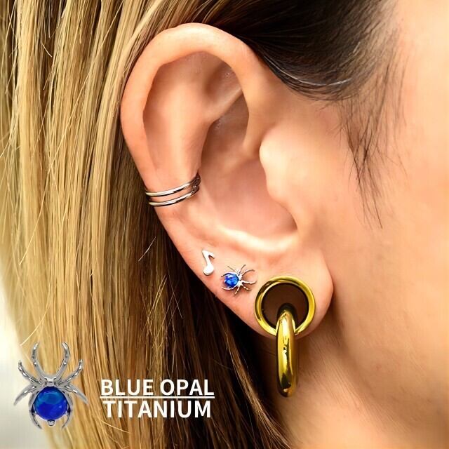 ・人気の蜘蛛ピアスは、オパールがアクセントになり可愛いです。ハロウィンにもオススメのピアスです。金属アレルギー対応のチタンピアスなのでお肌に優しく相当なアレルギーでない限り安心してご利用頂けます。ロブやヘリックス、トラガス、インナーコンク、アウターコンクなど軟骨ピアスにもオススメです。 ロブや軟骨に着ける場合、平均サイズは5mm〜6mmになります、あくまでも平均サイズなのでホールの厚みでご選択ください。※別売りのツールがあるとホールにスムーズに入りオススメです。