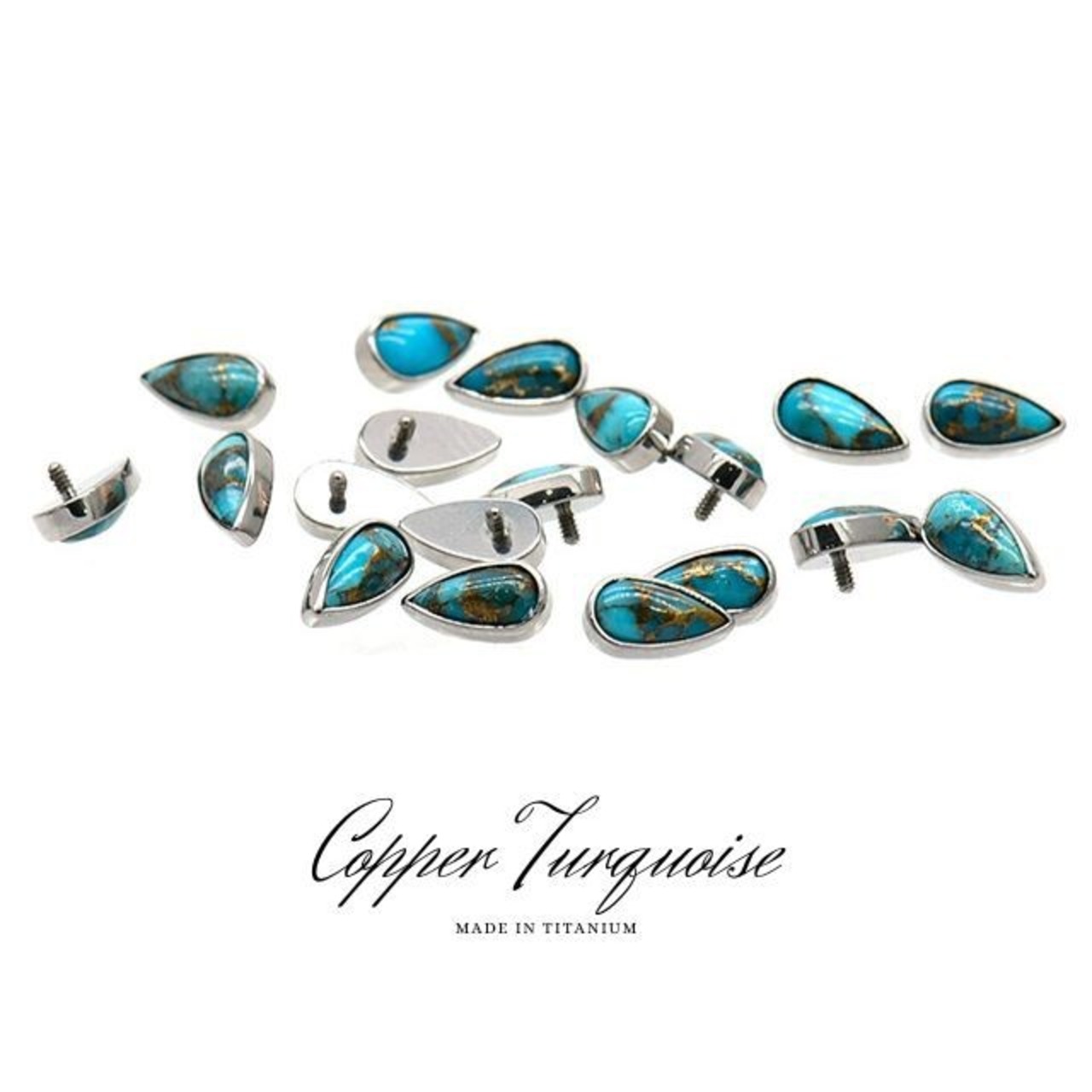 ・コッパーターコイズとは、天然のターコイズを砕き溶けた銅を注いで固め研磨したもので、コッパーがデザインのアクセントとなっています。通常のターコイズよりも銅がアクセントになっているのでかっこいい印象です。形もティアドロップなので気分で上下、向きを変えて使用するのもオススメです。つけっぱなしOKでロブ へリックス トラガス インナーコンク アウターコンク 軟骨ピアス等にオススメです。台座とバーベルは医療用タイタニアム(チタン)で、お肌に優しく相当なアレルギーでない限り安心してお使い頂けます。 ※別売りのツールがあると不器用な方でも、入れにくい部位でもスムーズにホールに入りオススメです。