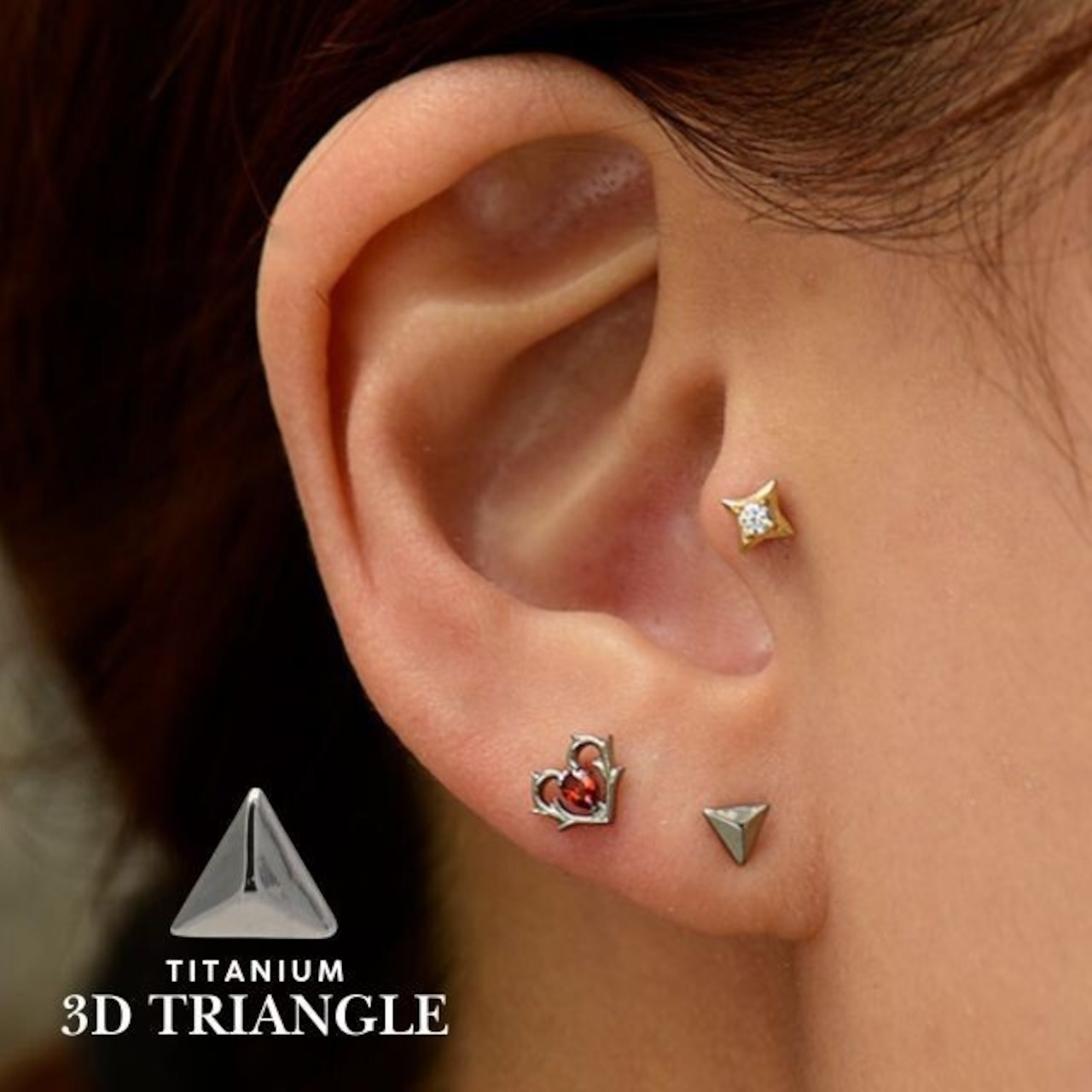 プッシュピアス 20G 18G 16G 14G 3D スタッズ チタンピアス 金属アレルギー対応 つけっぱなし ラブレットスタッド ボディピアス 軟骨ピアス トラガスピアス