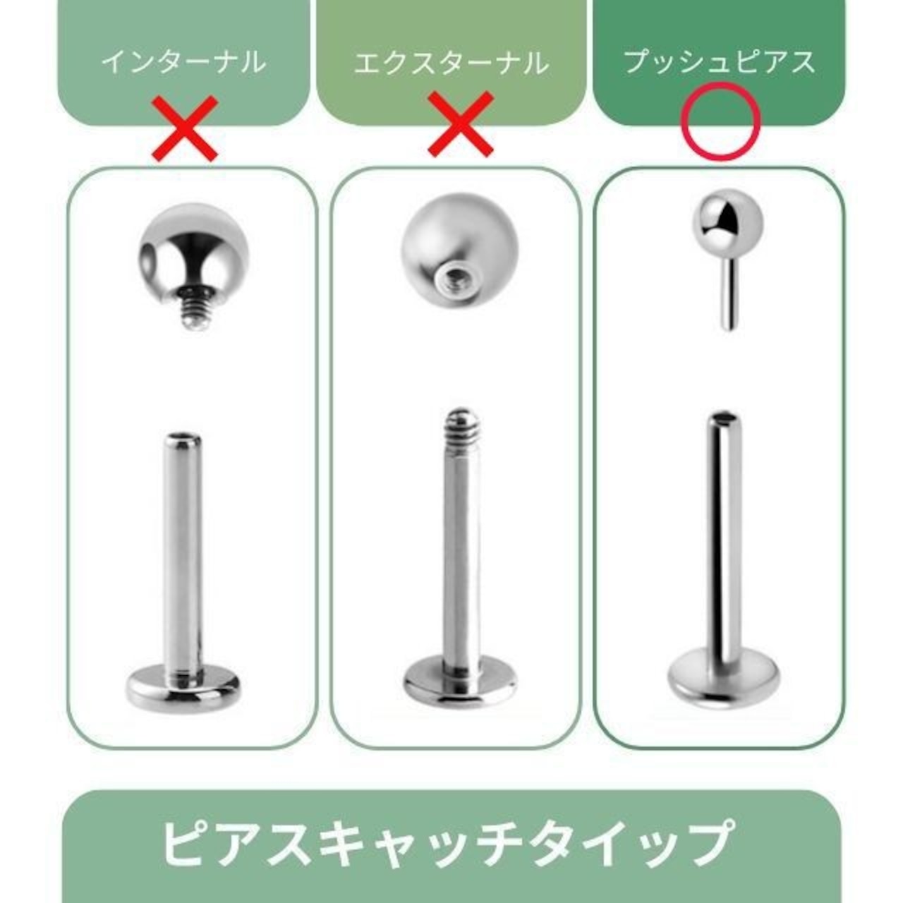 ・大人かっこいいスタッズデザインは立体的なので横から見た時も楽しめます。シンプルながらも光沢があるので高級感もあります。 素材は医療用タイタニアム(チタン)で、お肌に優しく相当なアレルギーでない限り安心してお使い頂けます。 つけっぱなしOKでロブ へリックス トラガス インナーコンク アウターコンク 軟骨ピアス等にオススメです。挿すだけワンタッチで着けれるので、不器用な方でも簡単に着けれます。 ※別売りのツールがあると不器用な方でも入れにくい部位でもスムーズにホールに入りオススメです。