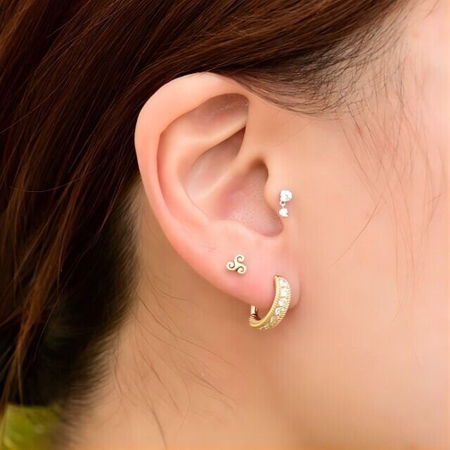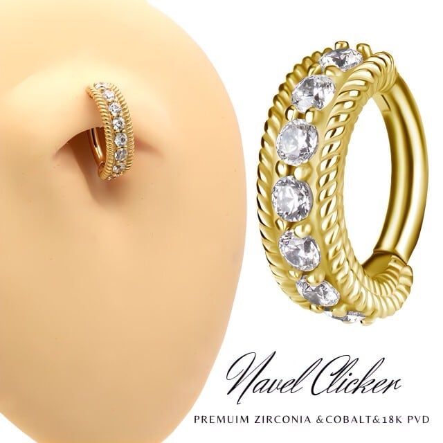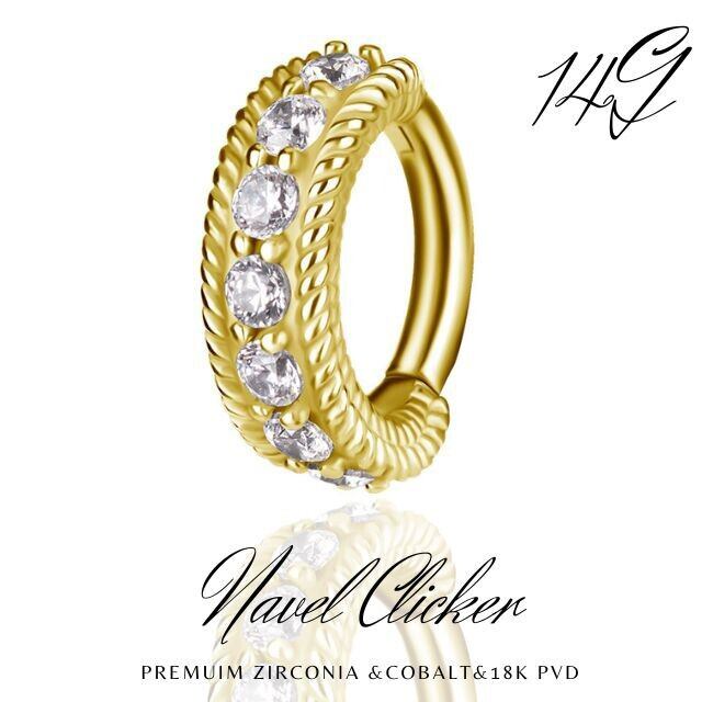 ・沢山ストーンが並んでついていて18Kゴールドコーティングなので輝きがとっても綺麗です。どの角度から見てもキラキラして見えますよ。ストーンは、プレミアムジルコニアなので通常のキュービックジルコニアよりも輝きがあり、とても綺麗です。 またリング部分の素材は、ホワイトゴールドやプラチナなどの貴金属に似た魅力的な白色と輝きを持つコバルトクロム合金で高い耐食性と驚くべき強度があり滑らかで光沢があるニッケルフリー(ノンニッケル)です。ニッケルフリーとは金属アレルギーを引き起こしやすいニッケル素材を含まずに作られている素材です。金属アレルギーの方も比較的安心してご使用いただけますが個人差があります。へそピアス ロブ ヘリックス トラガス ロック 軟骨ピアス 等にオススメです。