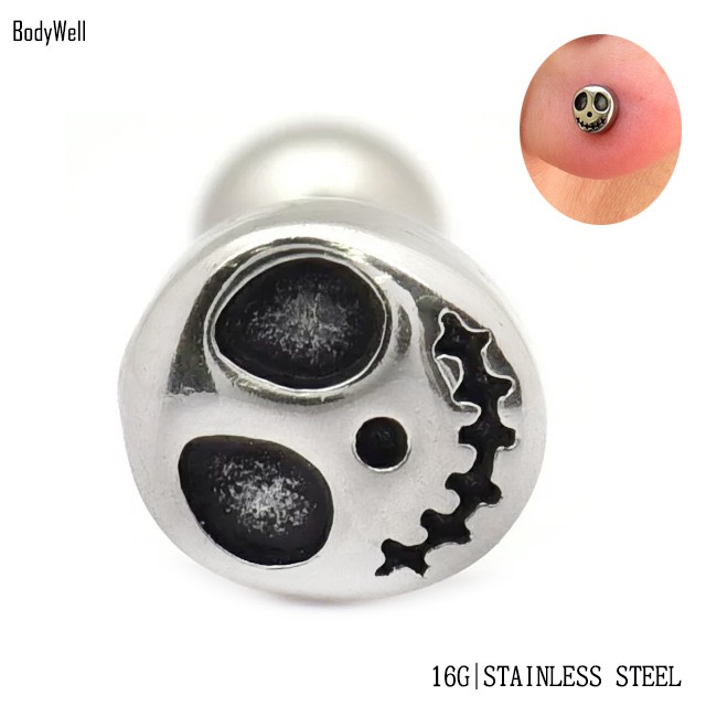 ボディピアス 14G スカル 骸骨 ストレートピアス 舌ピアス 軟骨ピアス インナーコンク アウターコンク ロブ ステンレスピアス