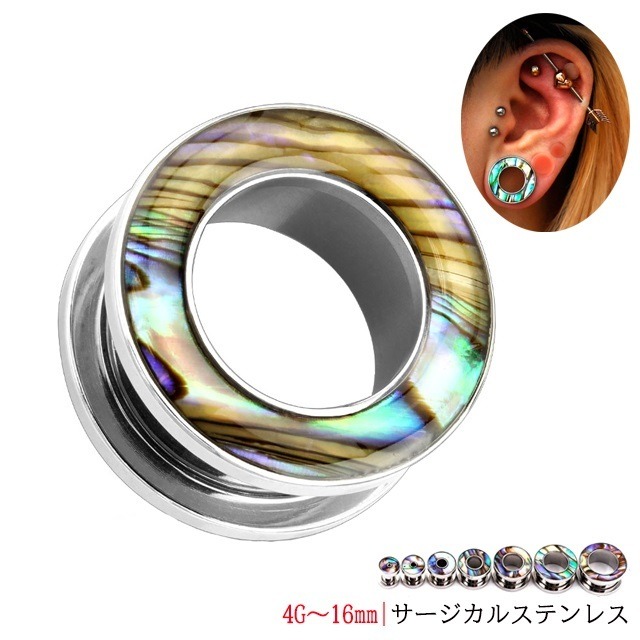 12mm 1/2" 海のオパール パウアシェル フレッシュトンネル ボディピアス ステンレスピアス 拡張ピアス