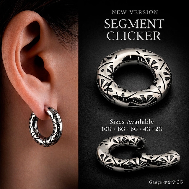 • ボディピアス 2G 手で開閉可能 人気 デザイン彫り セグメントリング セグメントクリッカー ステンレスピアス 拡張ピアス メンズピアス ユニセックス