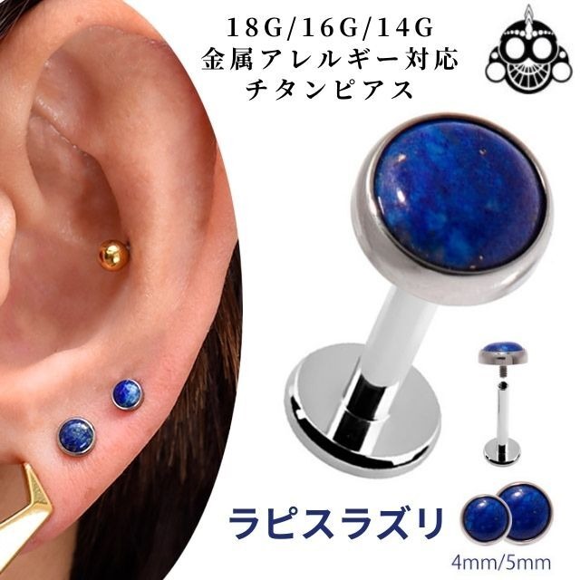 金属アレルギー対応 ラピスラズリ 18G 16G 14G チタンピアス インターナル ラブレットスタッズ 天然石 ボディピアス 軟骨ピアス トラガスピアス ヘリックス つけっぱなし
